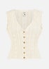 Yumi Ivory V Neck Button Down Crochet Knitted Top