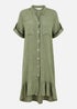 Yumi Khaki Italian Linen Shirt Dress With Frill Hem