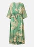 Yumi Mint Floral Print Kimono Midi Wrap Dress