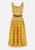 Yumi Mustard Floral Skater Dress With Denim Trims