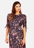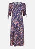 Yumi Navy Animal Floral Print Ruched Sleeve Midi Dress