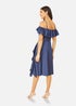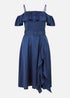 Yumi Navy Bardot Satin Frill Dress With Belt