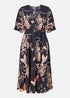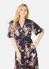 Learn moreIn a stylish midi length, this dress would be the perfect plus one to summer invites. The kimono shape sleeve compliments the wrap over neckline and cinched waistline perfectly. With a pretty all over print of florals and butterflies, this piece looks best with simple styling, high heel sandals and silver jewellery.