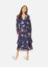This unique and beautiful Crane print from Yumi is showcased on this dress. The wrap around neckline, long sheer sleeve and self tie waist give this dress an ultra soft and feminine feel, along with the tiered frills on the midi length skirt. Try with simple heels and accessories for wedding invites this season.