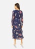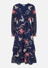 Yumi Navy Crane Print Long Sleeve Wrap Midi Dress