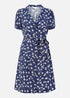 Yumi Navy Daisy Print Retro Shirt Dress