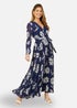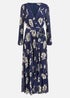 Yumi Navy Floral Pleated Midi Wrap Long Sleeve Dress