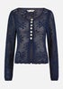 Yumi Navy Flower Crochet Button Up Cardigan