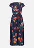 Yumi Navy Flower Print Wrap Midi Dress