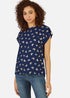 Yumi Navy Foil Butterfly Print Top