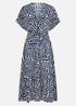 Yumi Navy Geometric Print Ruched Waist Midi Dress With Kimono Sleeves