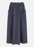 Yumi Navy Italian Linen Midi Skirt With Pockets