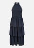 Yumi Navy Lace Halter Neck Midi Dress With Tiered Hem