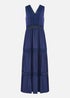 Yumi Navy Lace Trim Cotton Midi Sun Dress