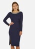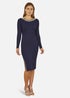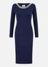 • Yumi Navy Pearl Neckline Fitted Midi Knitted Dress