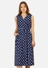 Yumi Navy Polka Dot Mesh Wrap Skater Dress With Pockets