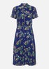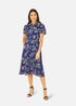 Yumi Navy Recycled Bird Print Midi Shirt Dress
