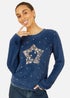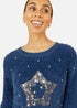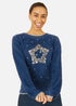 Yumi Navy Sequin Snowflake Fluffy Jumper