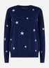 Yumi Navy Silver Foil Star Print Relaxed Fit Jumper