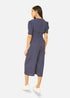 The elbow length sleeve and wide lapel on the wrap around collar really give this jumpsuit its retro feel. The Navy polka dot feels fresh and summery, with the culotte style leg giving it a comfortable fit. Style with trainers to give modern retro style a go this season.
