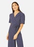 Learn moreThe elbow length sleeve and wide lapel on the wrap around collar really give this jumpsuit its retro feel. The Navy polka dot feels fresh and summery, with the culotte style leg giving it a comfortable fit. Style with trainers to give modern retro style a go this season.