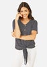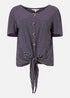 Learn moreAdd a classic look to your wardrobe with this striped jersey top from Yumi. Cut from super soft cotton, with a button front, it's styled with a tie on the hemline for a sweet finish.