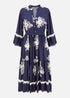 We love this new midi dress from Yumi, in a gorgeous shade of Navy with white print details that really elevate the look. Long flowy sleeves frame a button down notch neckline, with a ruched tie waist for shape, and gathered midi skirt for movement. This looks perfect in the sunshine with sandals or trainers. Made from supersoft easy care viscose.