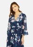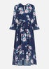 Yumi Navy Watercolour Floral Dip Hem Midi Dress