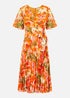Yumi Orange Floral Midi Wrap Pleated Dress
