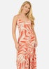 • Yumi Orange Leaf Print Maxi Dress With Cross Back
