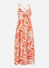 Yumi Orange Leaf Print Maxi Dress With Cross Back