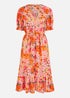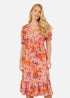 Yumi Pink Floral Midi Dress With Frill Hem and Puff Sleeves