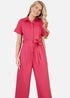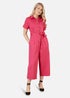 Yumi Pink Viscose Twill Button Up Utility Style Jumpsuit