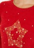 Yumi Red Fluffy Star Christmas Jumper