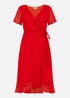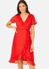 Learn moreTwirl into the party spirit with the Yumi Red Frill Wrap Dress. It’s cut in a classic wrap shape with gentle ruffles running from shoulder to hemline. The waist is pulled in by a tie that’s enhanced by a stylish tassel, with a lining underneath to finish. Complete your look with block heels.