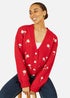 Yumi Red Hand Embroidered Chunky Knitted Cardigan