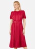 Yumi Red Satin Striped Midi Dress With Pleats & Matching Belt