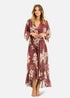 Yumi Rose Pink Floral Print Kimono Midi Wrap Dress