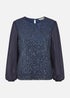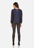 Yumi Sequin Top With Sheer Sleeves In Navy