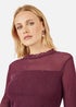 Yumi Shimmer Print Mesh Stretch Fitted Top In Burgundy