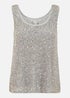 Learn moreGrab this Silver Yumi top with all over sequins to be invite ready without the stress! A simple vest shape with round neckline that looks perfect paired with a wide leg trouser, jeans or skirt. Add a blazer and heels and you're ready to go shimmy and shine.