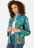 Yumi Teal Floral Print Reversible Cotton Quilted Jacket