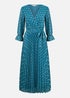 Yumi Teal Foil Printed Pleated Wrap Midi Dress