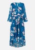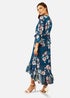 Yumi Watercolour Floral Dip Hem Midi Dress In Teal