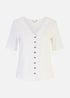 Learn moreA relax everyday staple, elevated for the new season, In classic white this T-shirt has a V neckline, button down design and lettuce hem short sleeves. The perfect essential to wear with jeans and trainers for an off duty fit.
