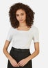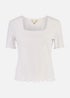 Learn moreAn upgrade from your everyday White T-Shirt, with a lettuce trim and mega flattering square neckline. You'll be reaching for this little treasure form your wardrobe over and over again. Add this to your daily rotation for paining with skirts, jeans or trousers. Made from supersoft and breathable 100% cotton.
