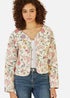 Yumi White Floral Print Reversible Cotton Cropped Quilted Jacket
