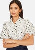 This super cute polka dot shirt has extra style points with trending lace details on the bodice. The boxy shape is perfect for styling with everyday fits, think denim skirt and jeans. The short sleeve style gives it a real look of spring time and it's something you'll be able to style over and over.