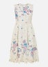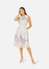 Off to the races? Pair this gorgeous white lace number with a fascinator and you're good to go. The lace overlay is printed with a pretty floral in pink and blue. In a classic fit and flare skater style, with round necklines and knee length, this dress fastens in the back with a zipper and button at the neckline.