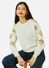 Yumi White Relaxed Fit Jumper With Sequin Star Sleeves